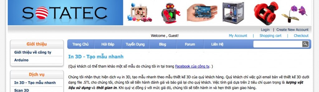 Sotatec nhận in 3D, tạo mẫu 3D theo công nghệ tạo mẫu nhanh FDM/FFF từ mẫu thiết kế 3D của khách hàng. Khách gởi file 3D định dạng STL đến sotatec.com.vn, cơ sở in 3D sẽ tiến hành báo giá cho khách hàng dựa theo tiêu chí là thời gian chạy máy và lượng vật liệu tiêu hao.