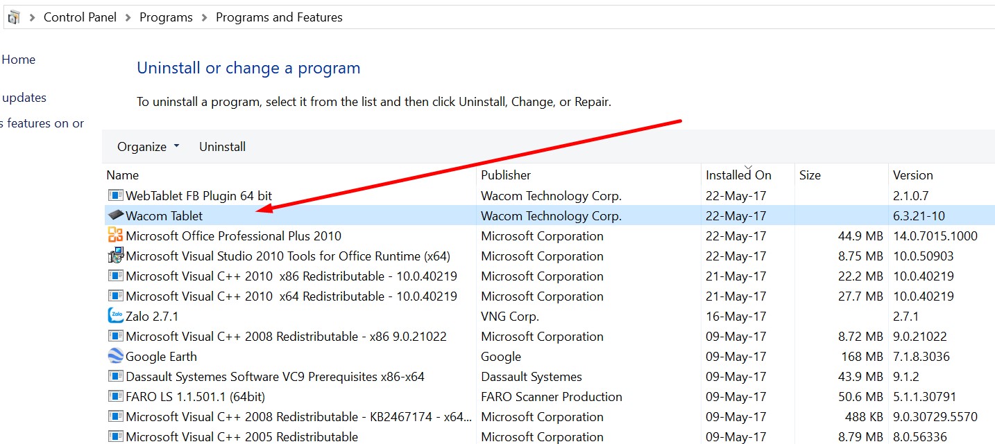 1.Bạn gỡ ứng dụng Wacom driver ra khỏi máy.