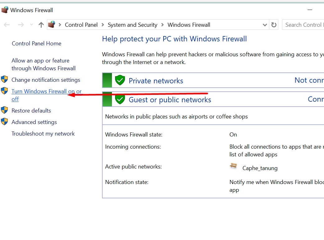 5.Bật lại tường lửa ( y chang hình ở bước 2)